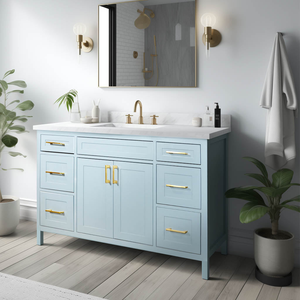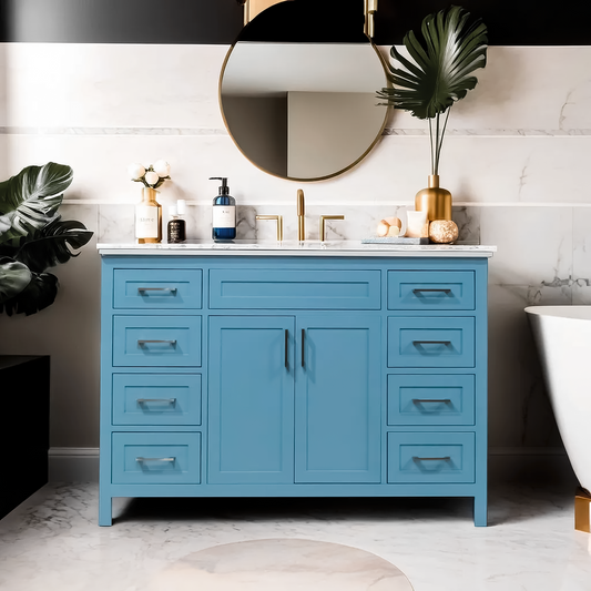 48" Knit blue 8 drawer solid wood vanity with quartz top
