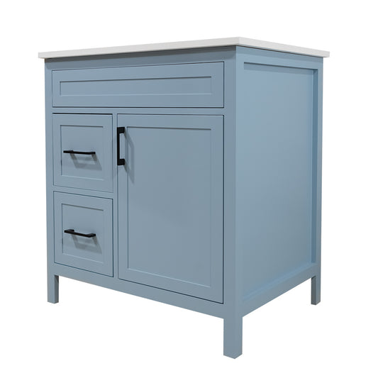 30" Wood Vanity in Cement Grey Shaker Style with Quartz Top