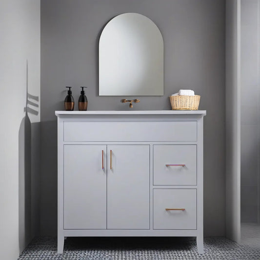 36" Fog Grey Amelia Wood Vanity for Bathroom with Quartz Top and Sink Mirea Style Doors