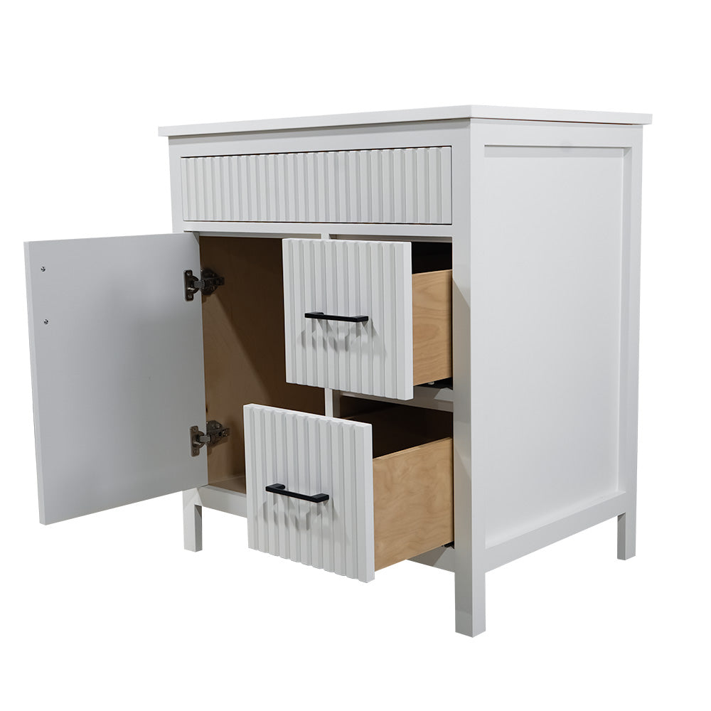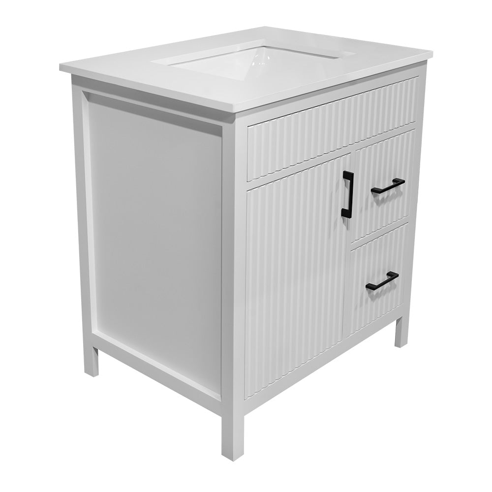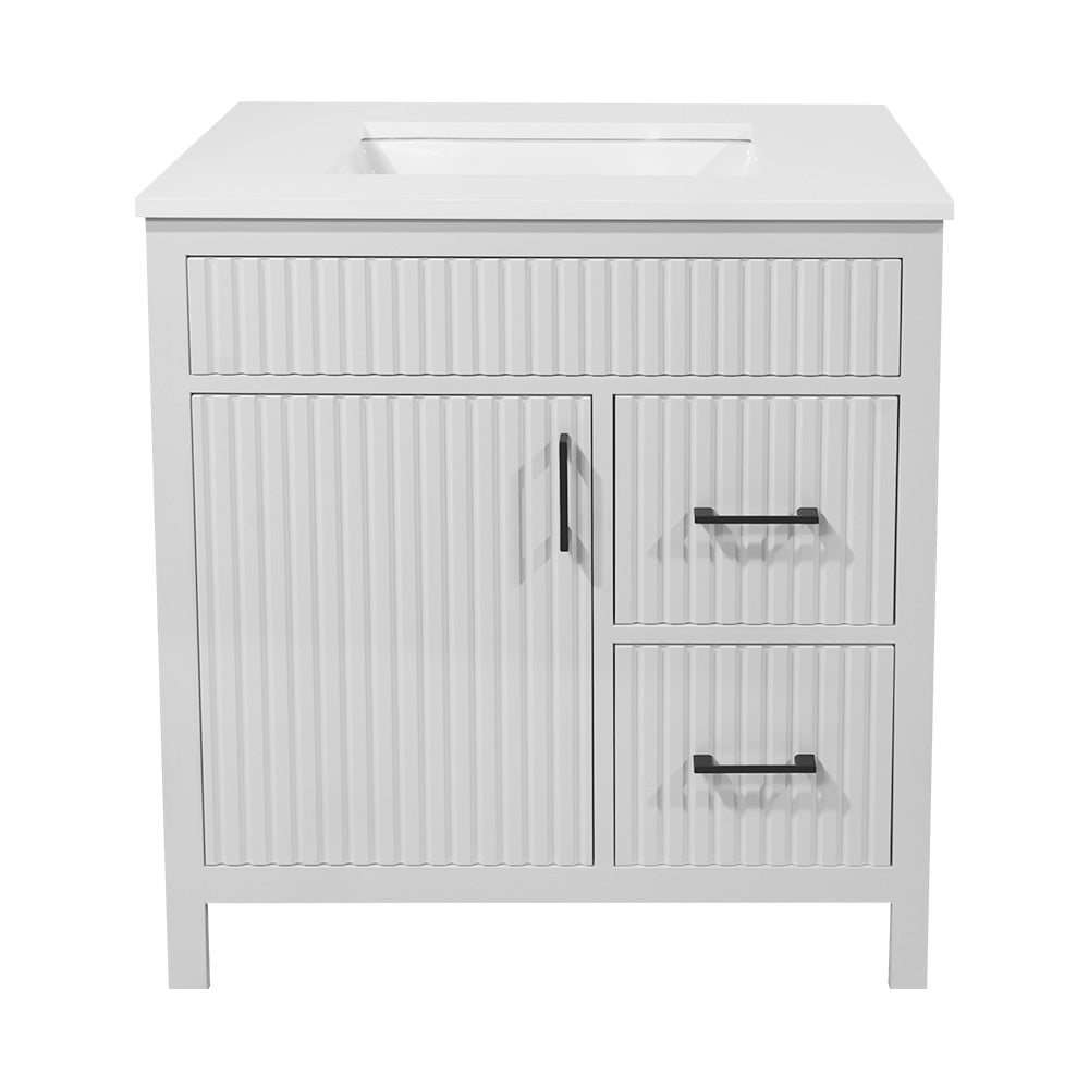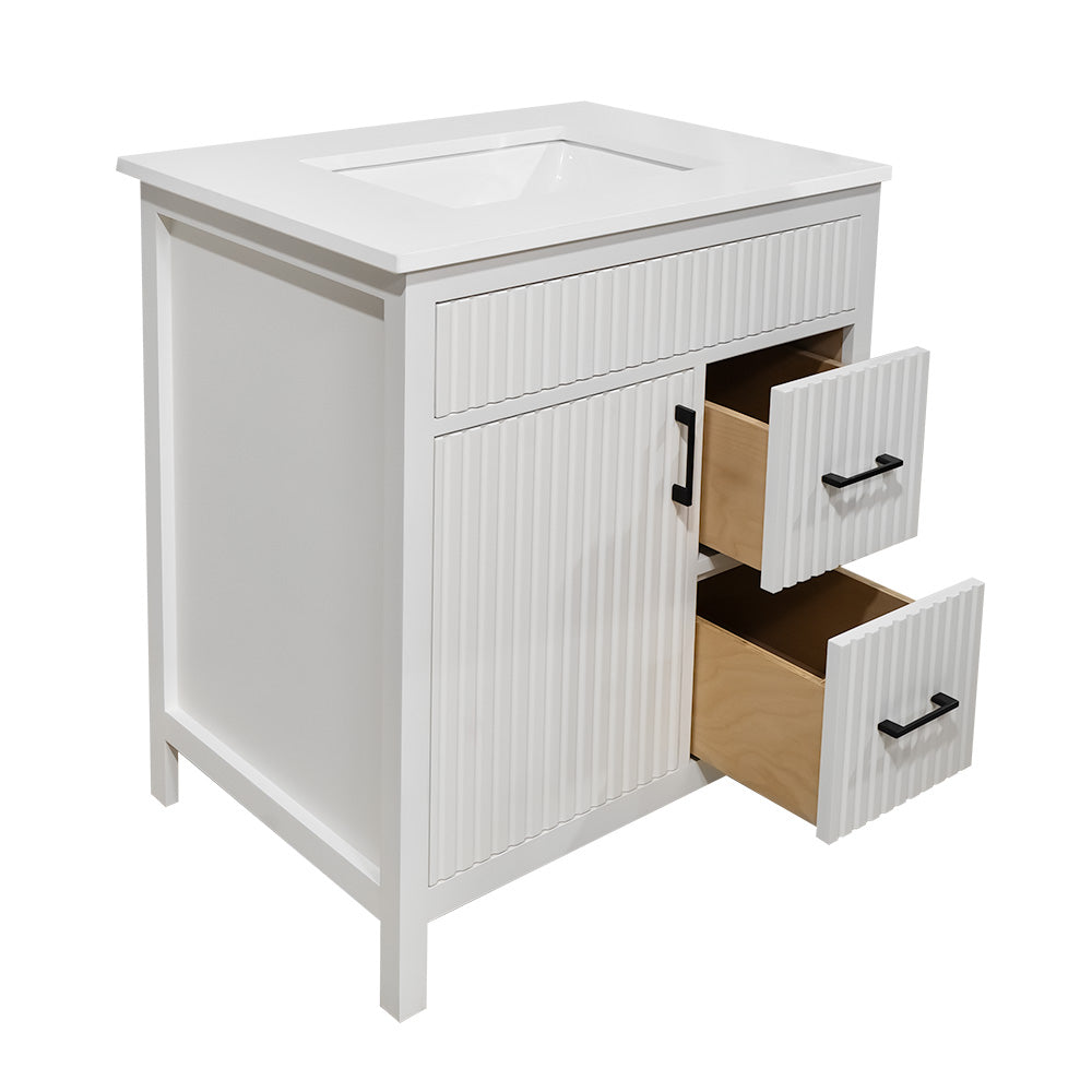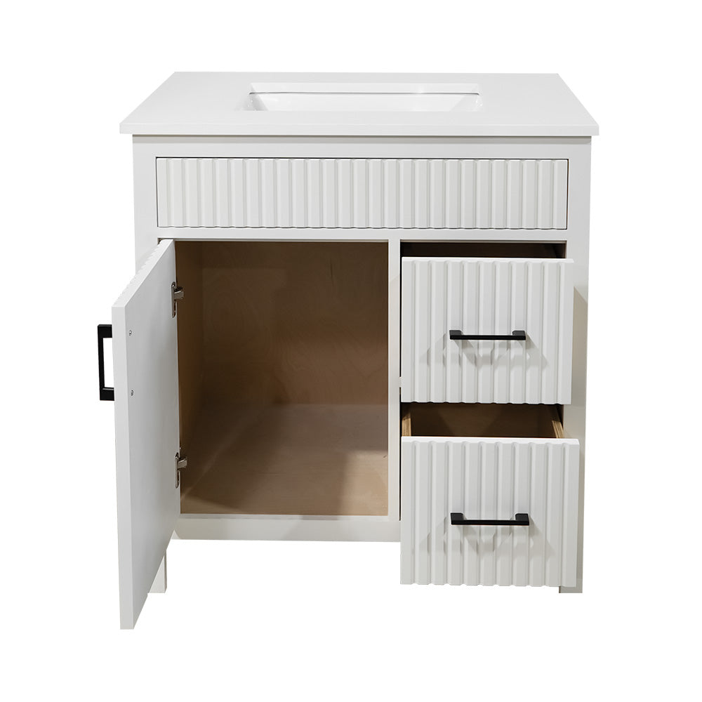 30" Fluted Design Wooden Simply White Vanity with Quartz Top