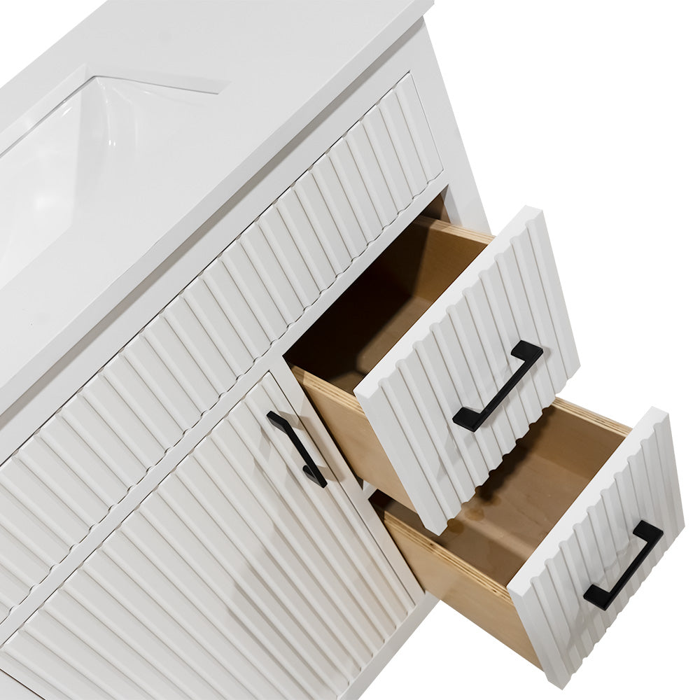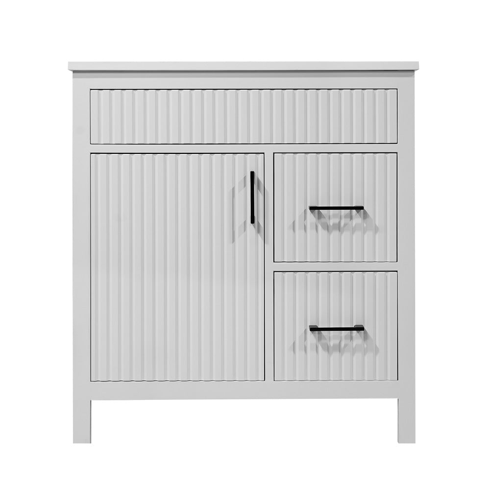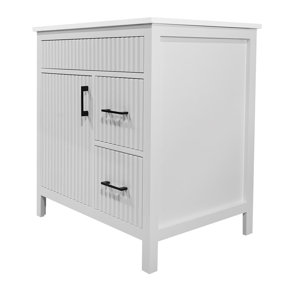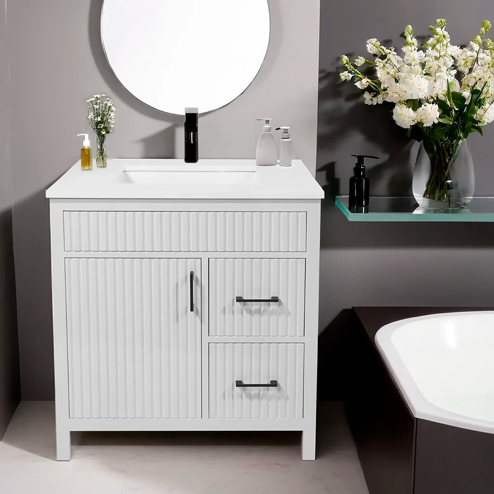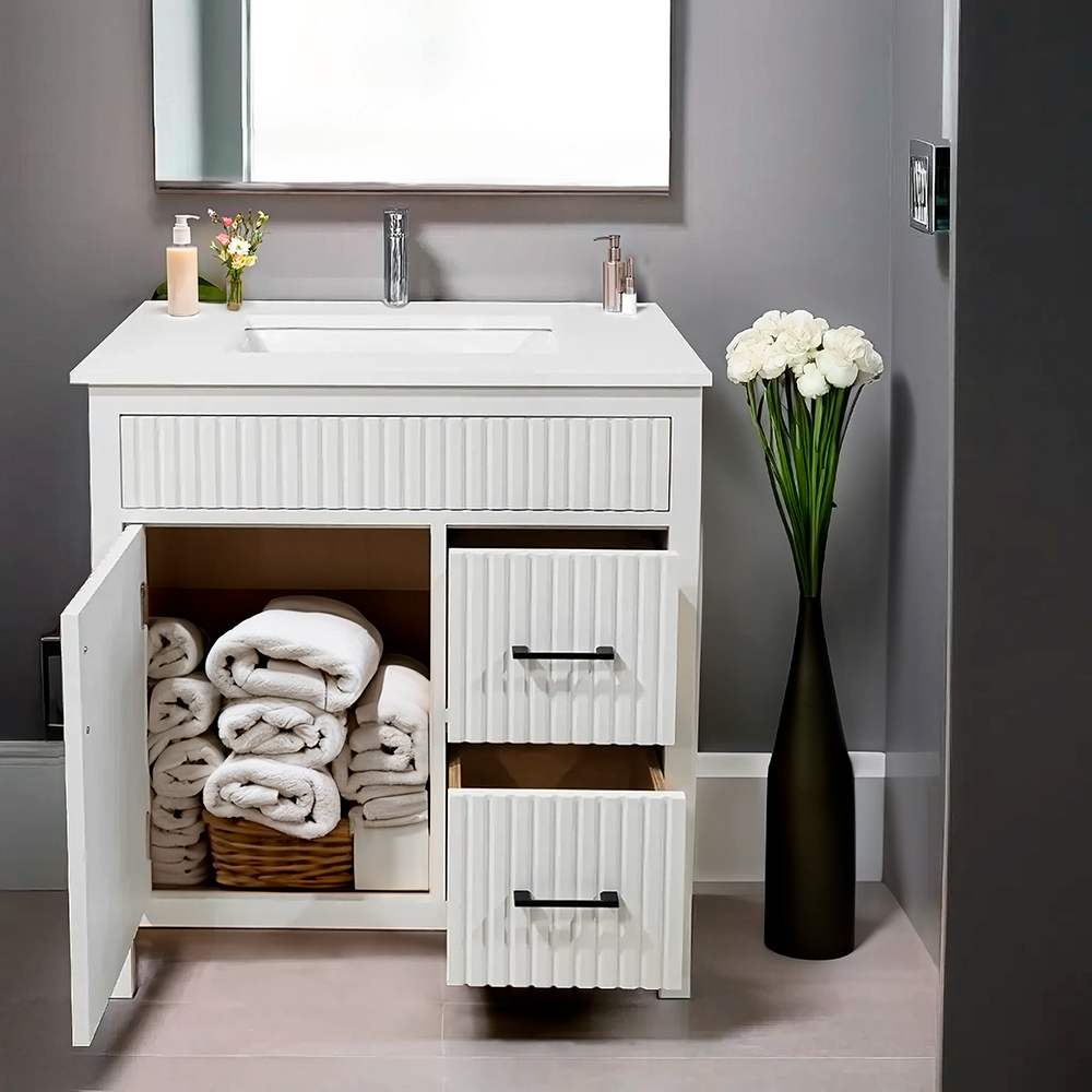 30" Fluted Design Wooden Simply White Vanity with Quartz Top