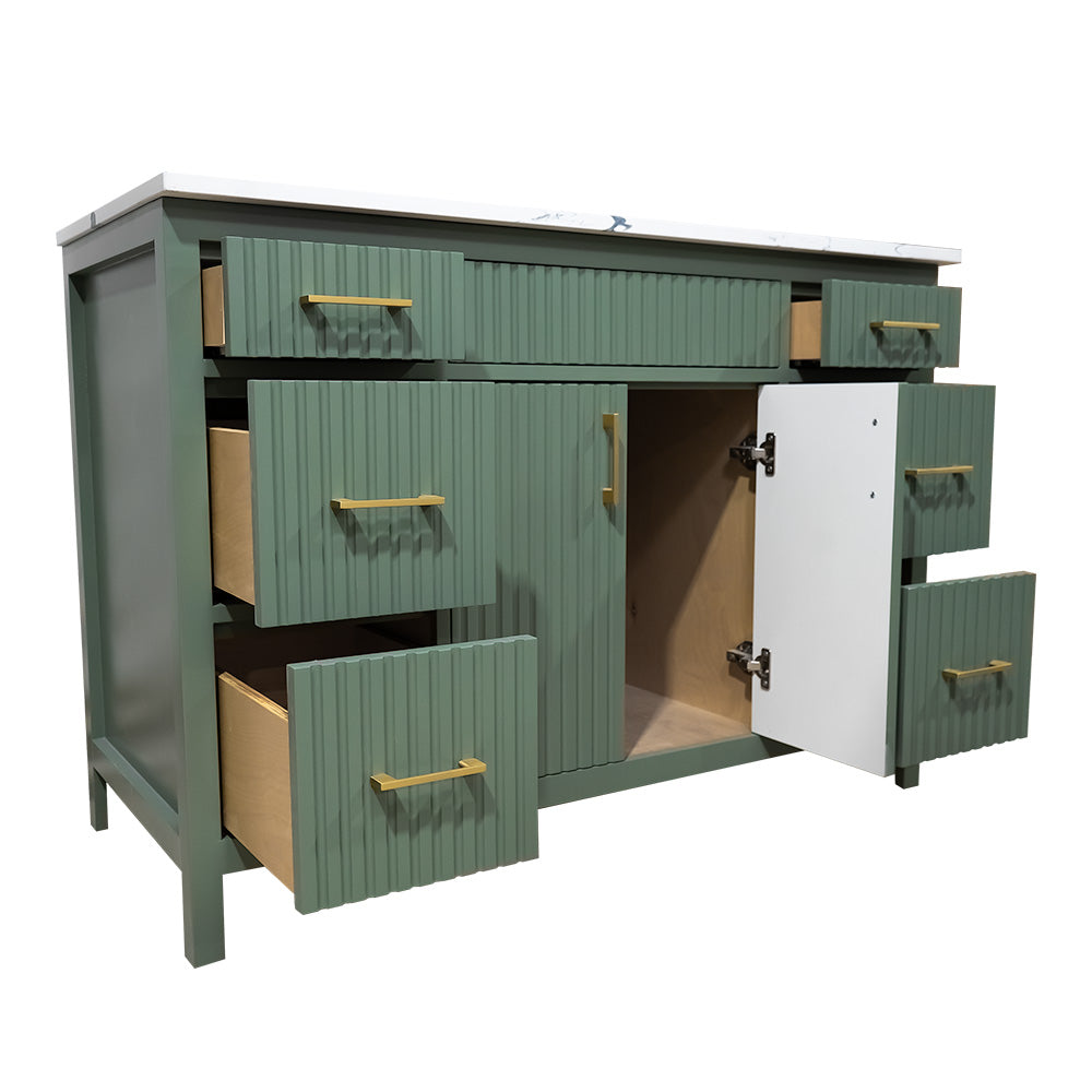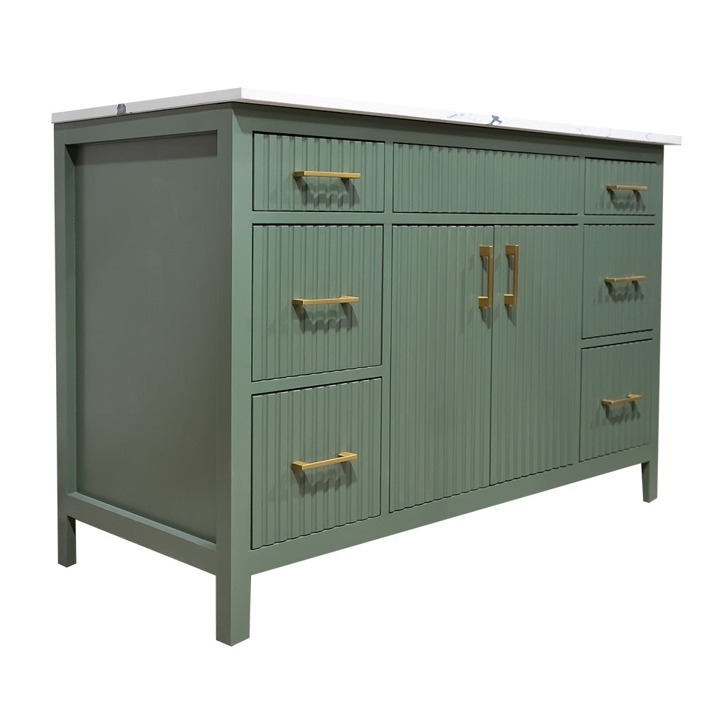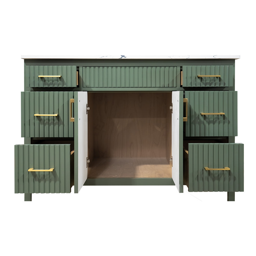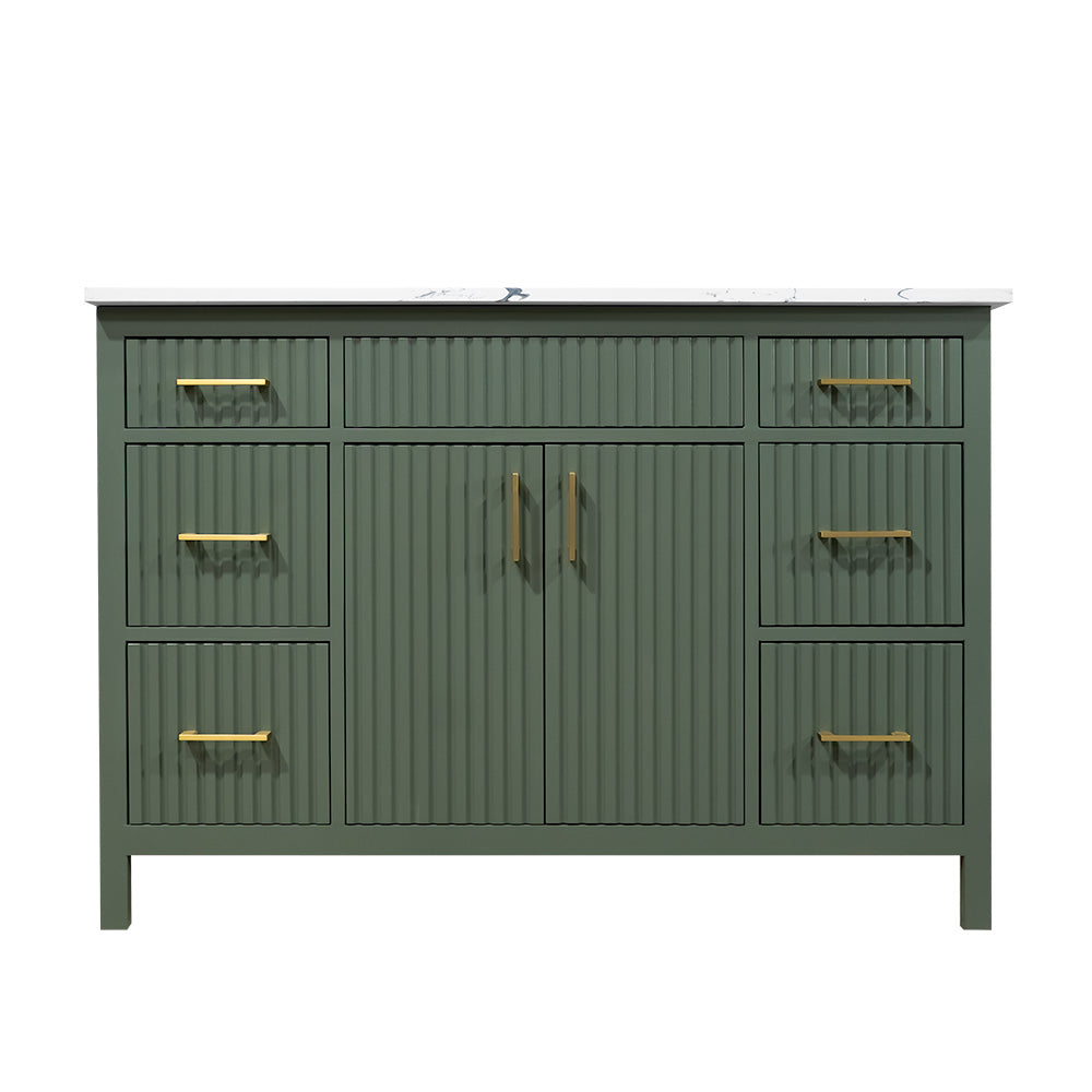 Amalia 48" fluted style Lush color wood vanity with quartz top