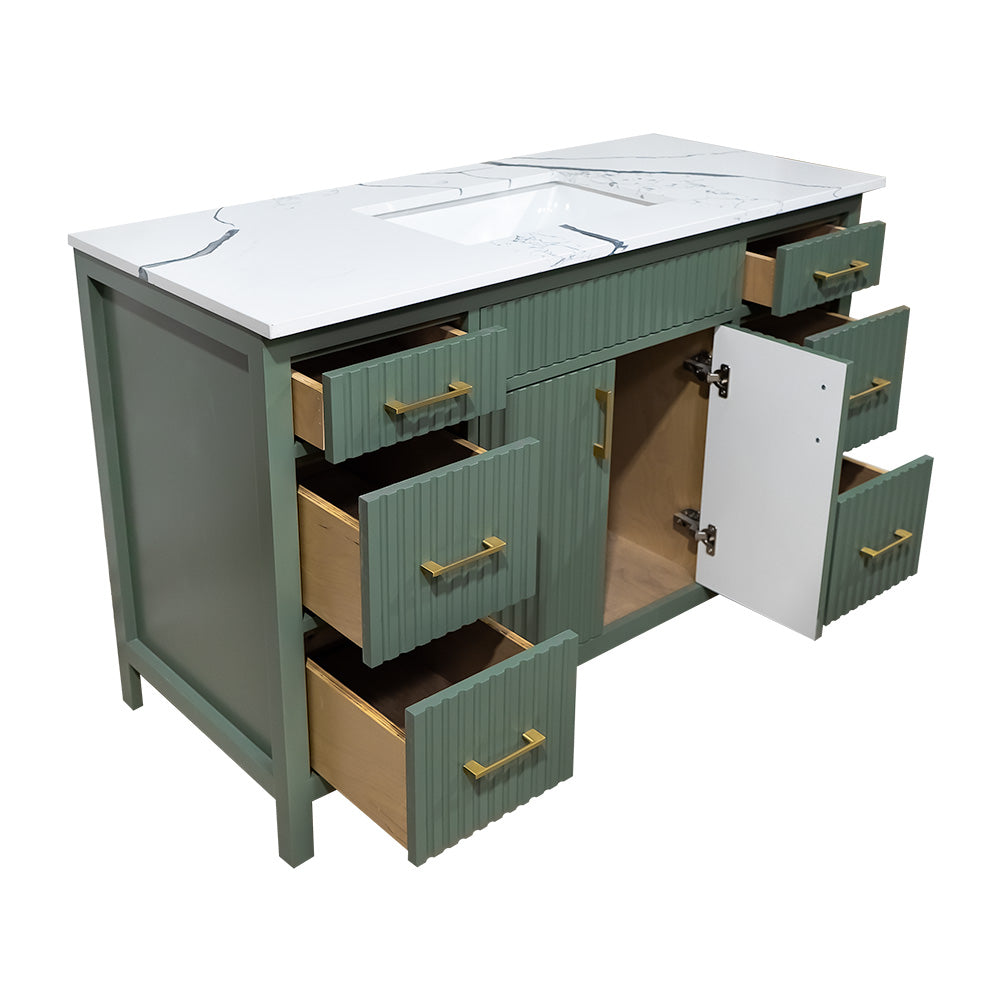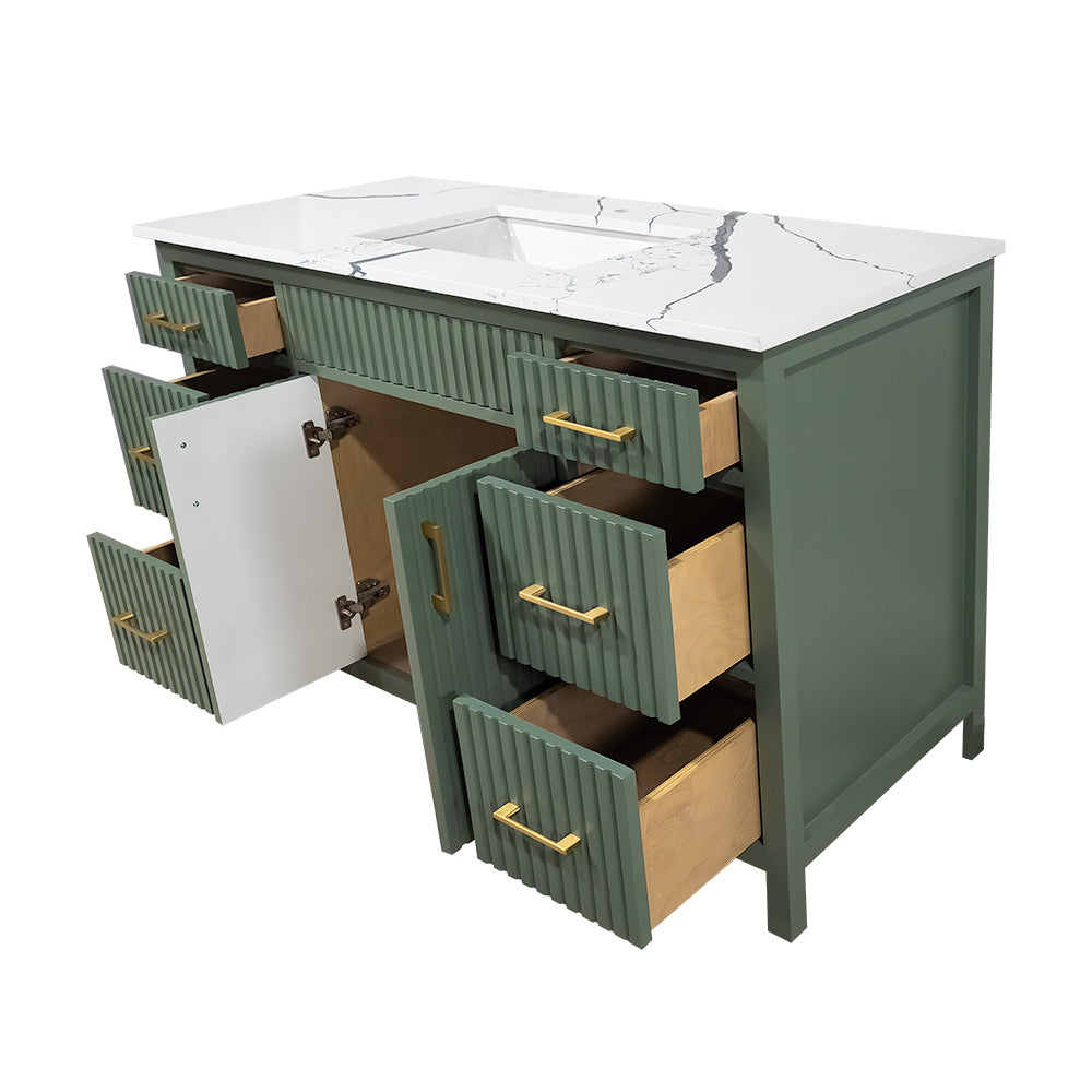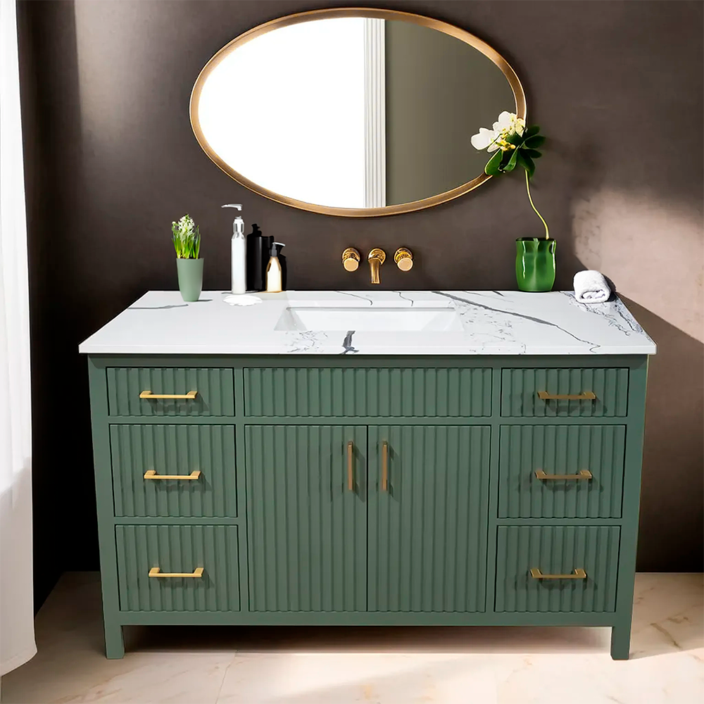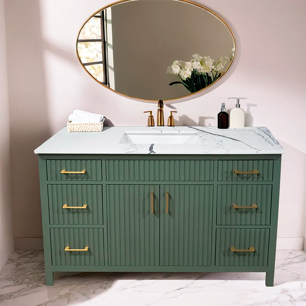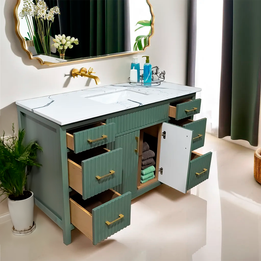 Amalia 48" fluted style Lush color wood vanity with quartz top