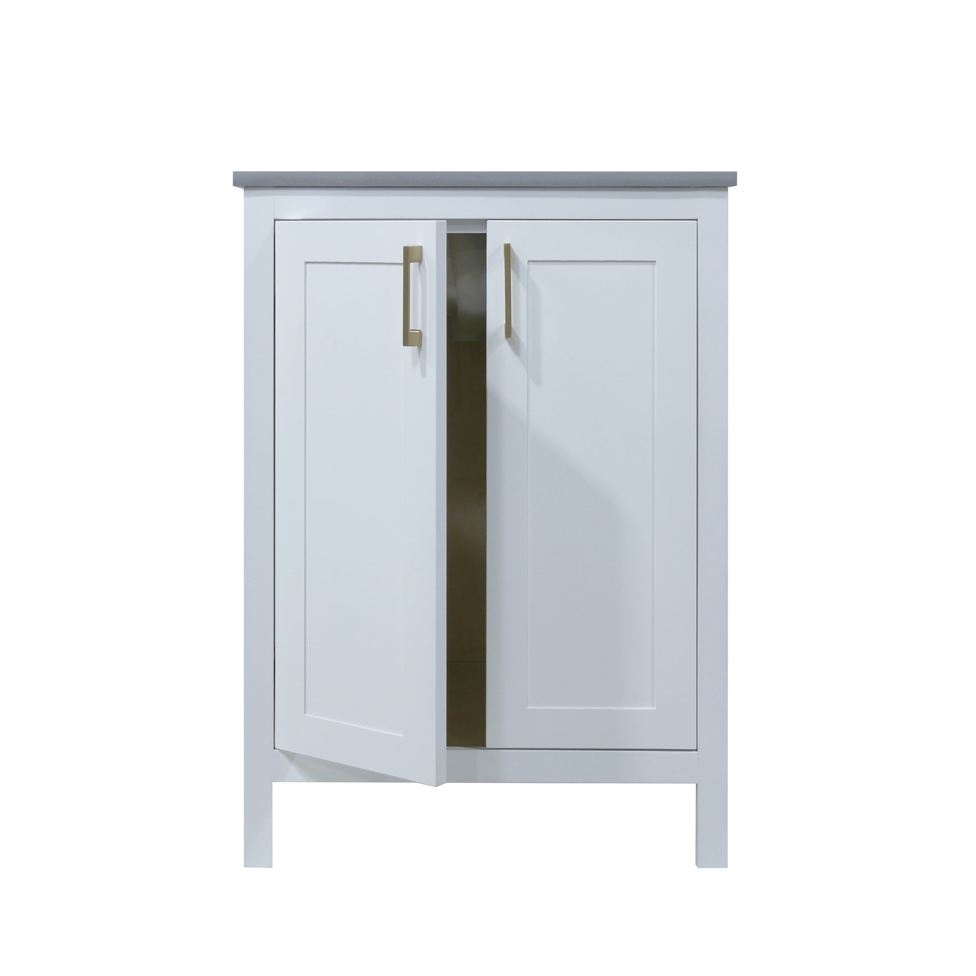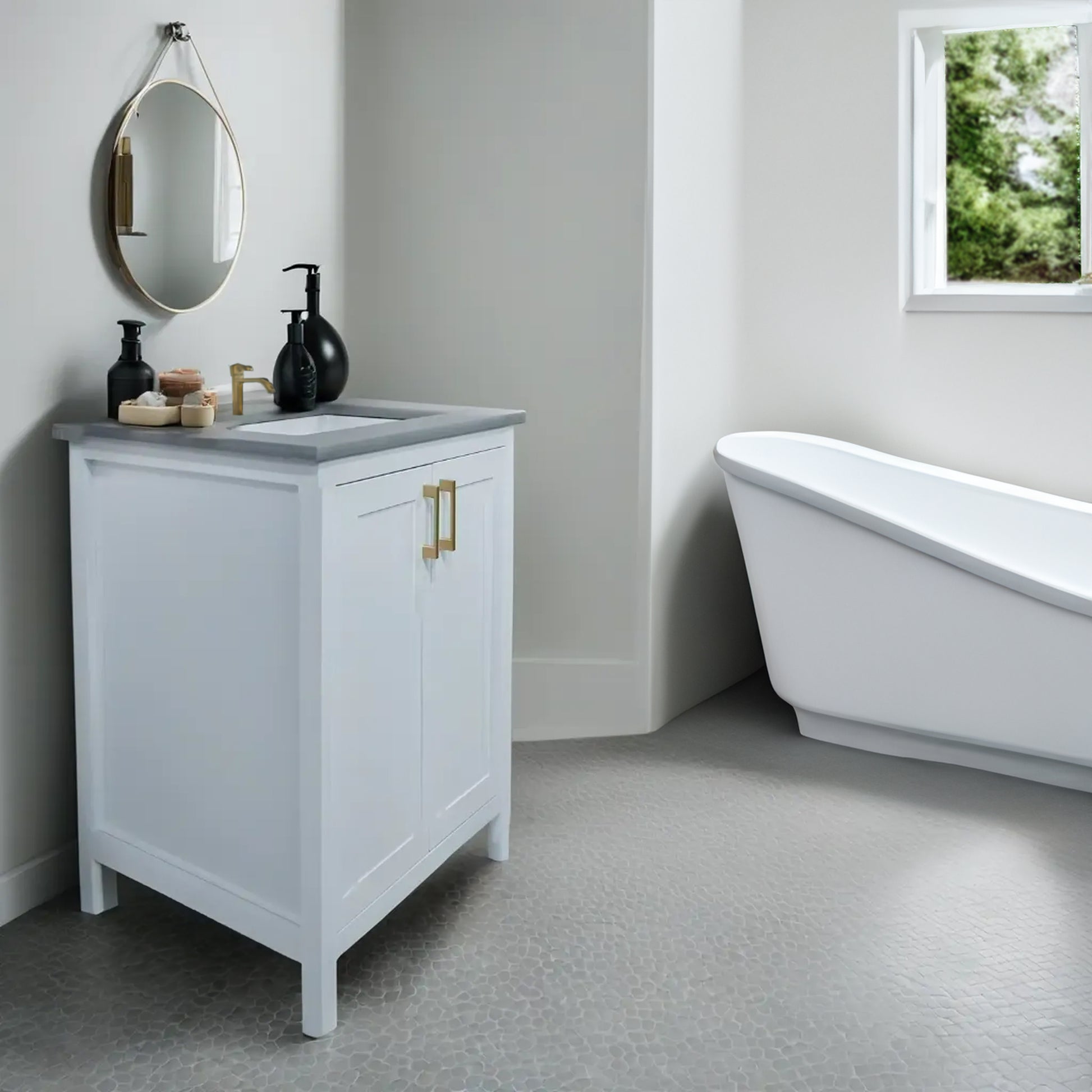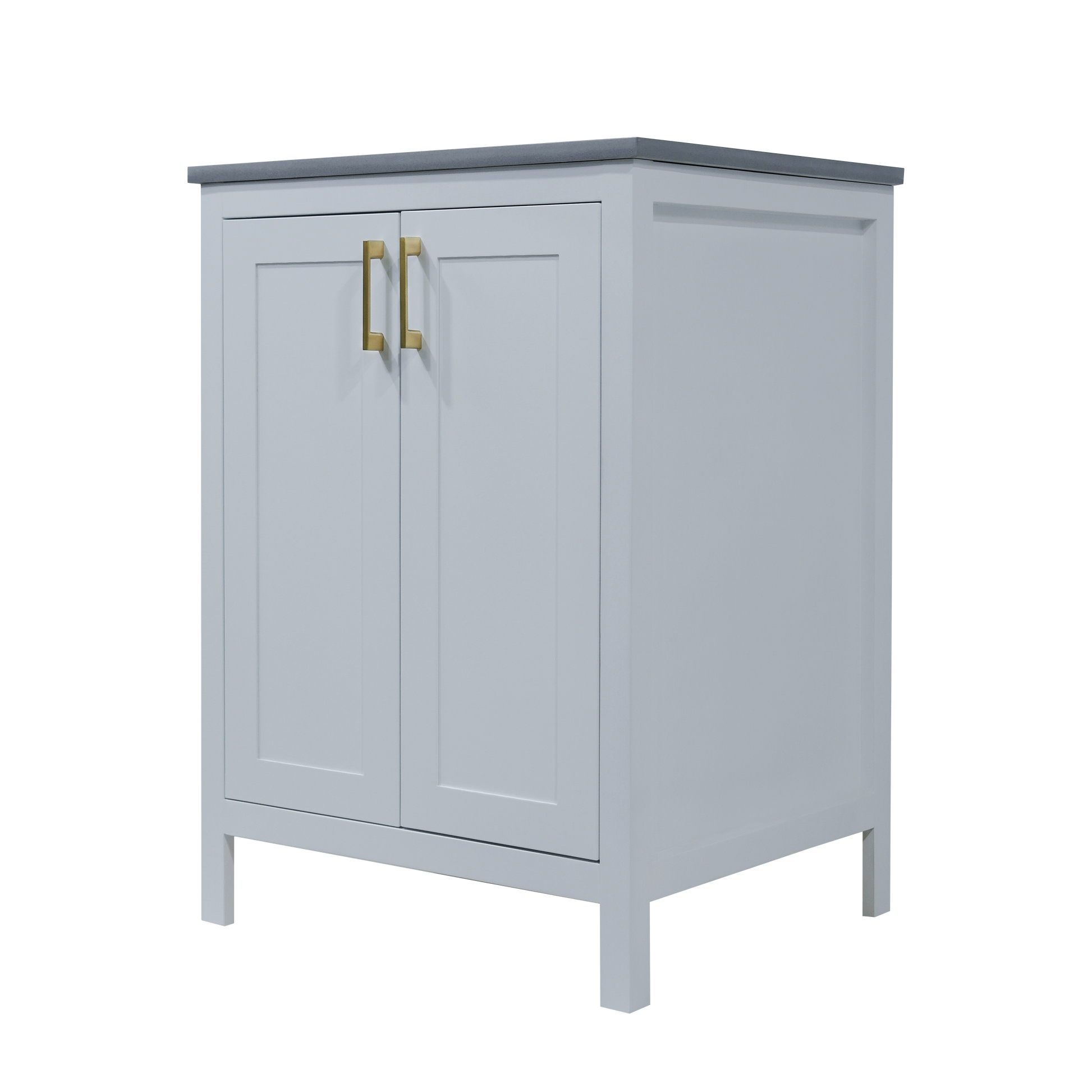 24" White shaker style wood vanity with Quartz top for bathroom made in Canada
