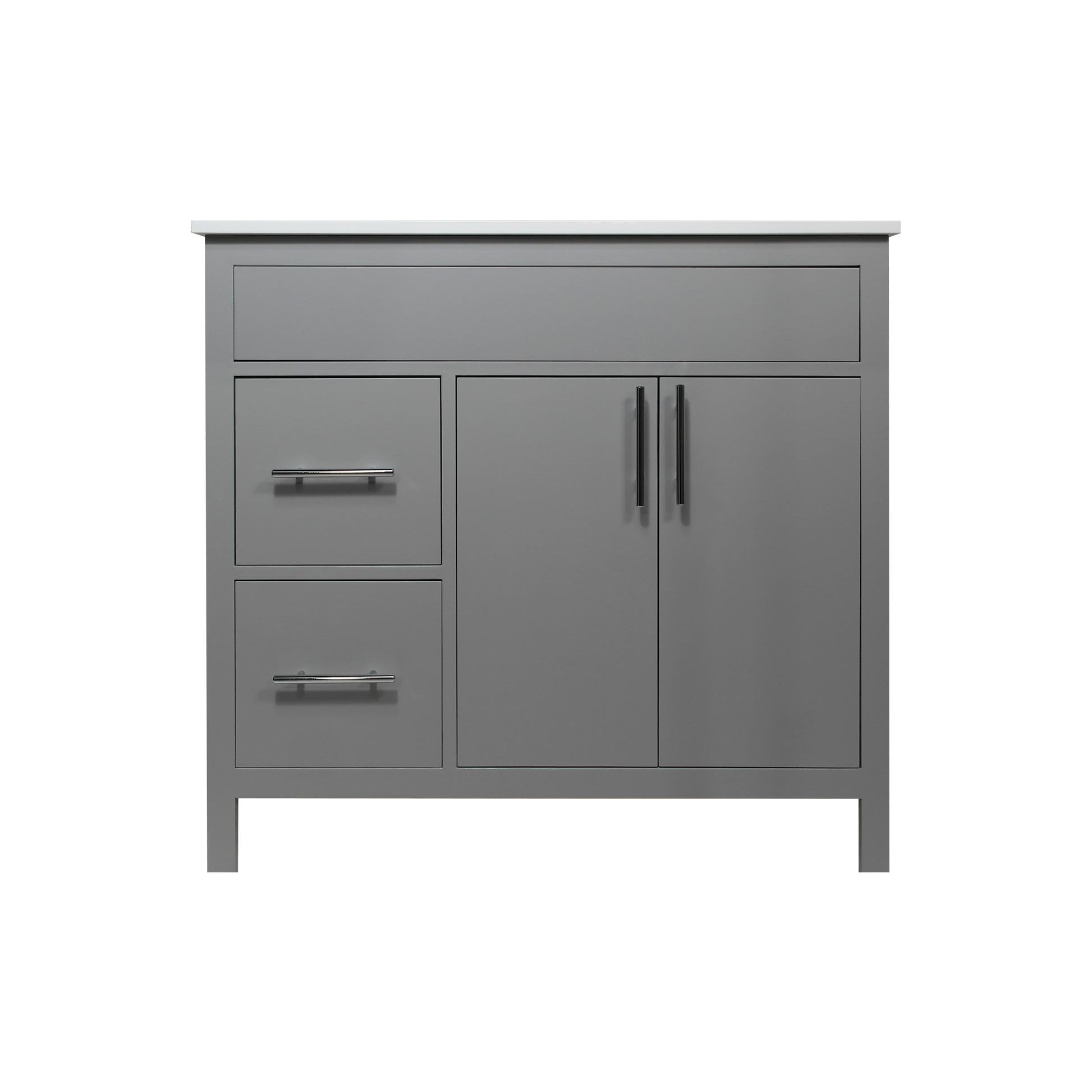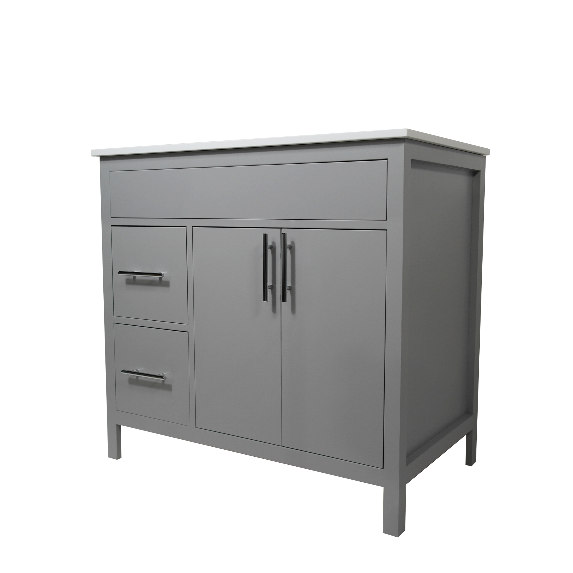 36" Fog Grey Amelia Wood Vanity for Bathroom with Quartz Top and Sink Mirea Style Doors