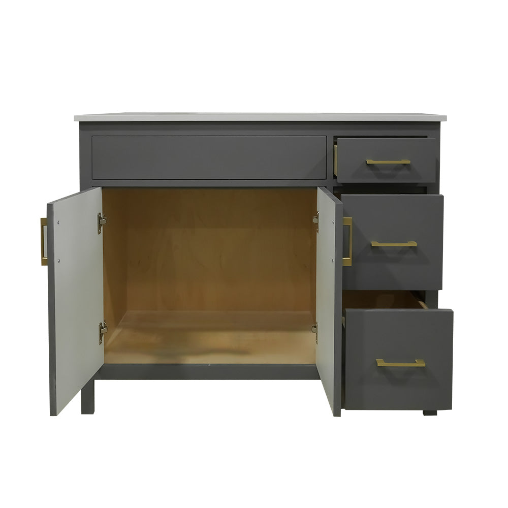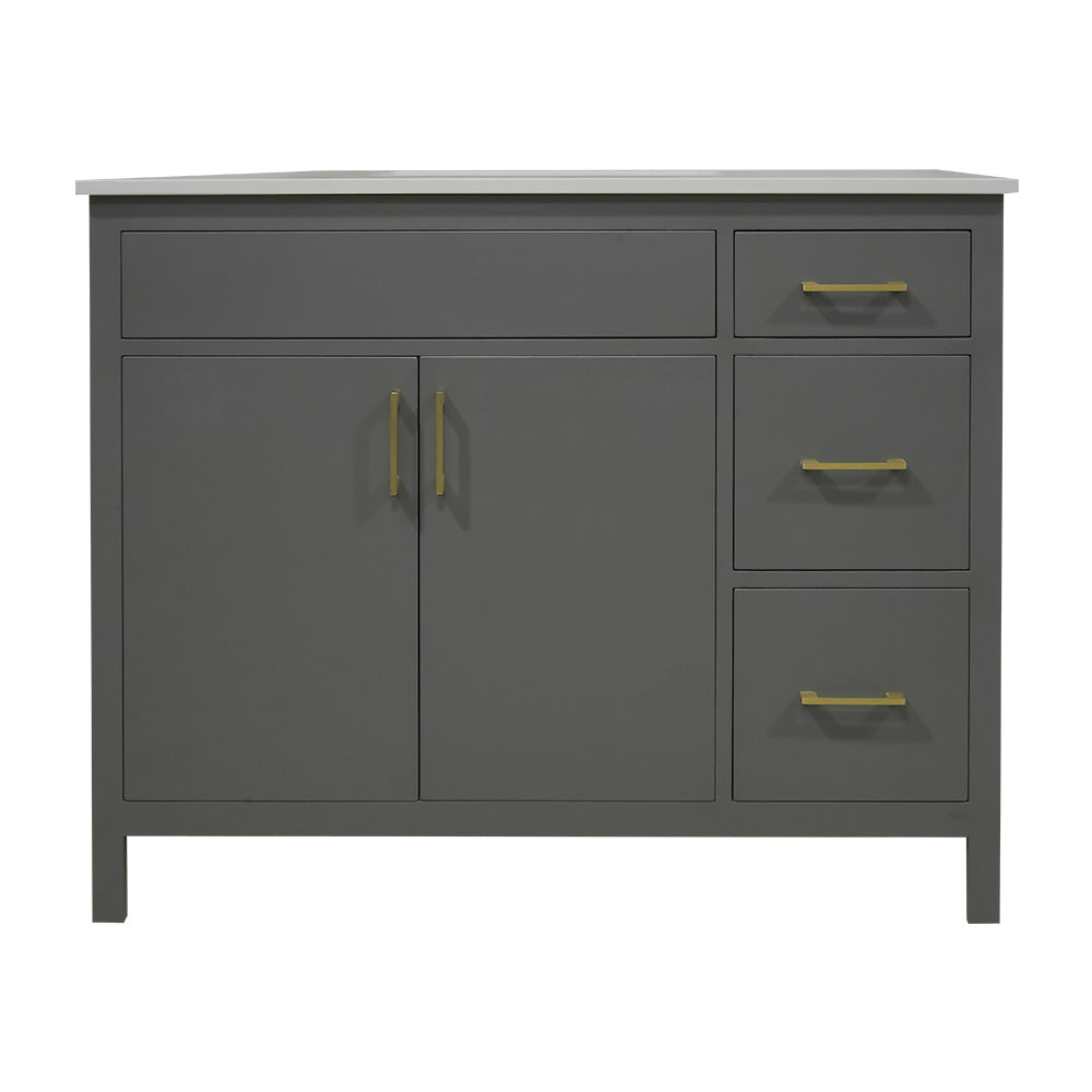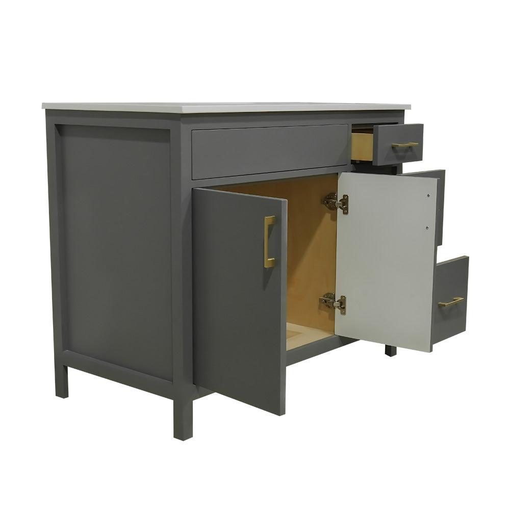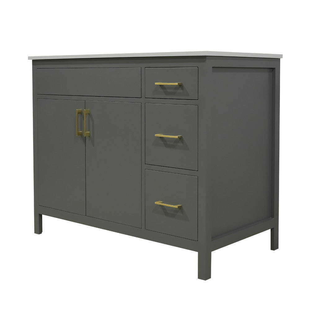42" wood vanity 2 doors 3 drawers on the right include quartz