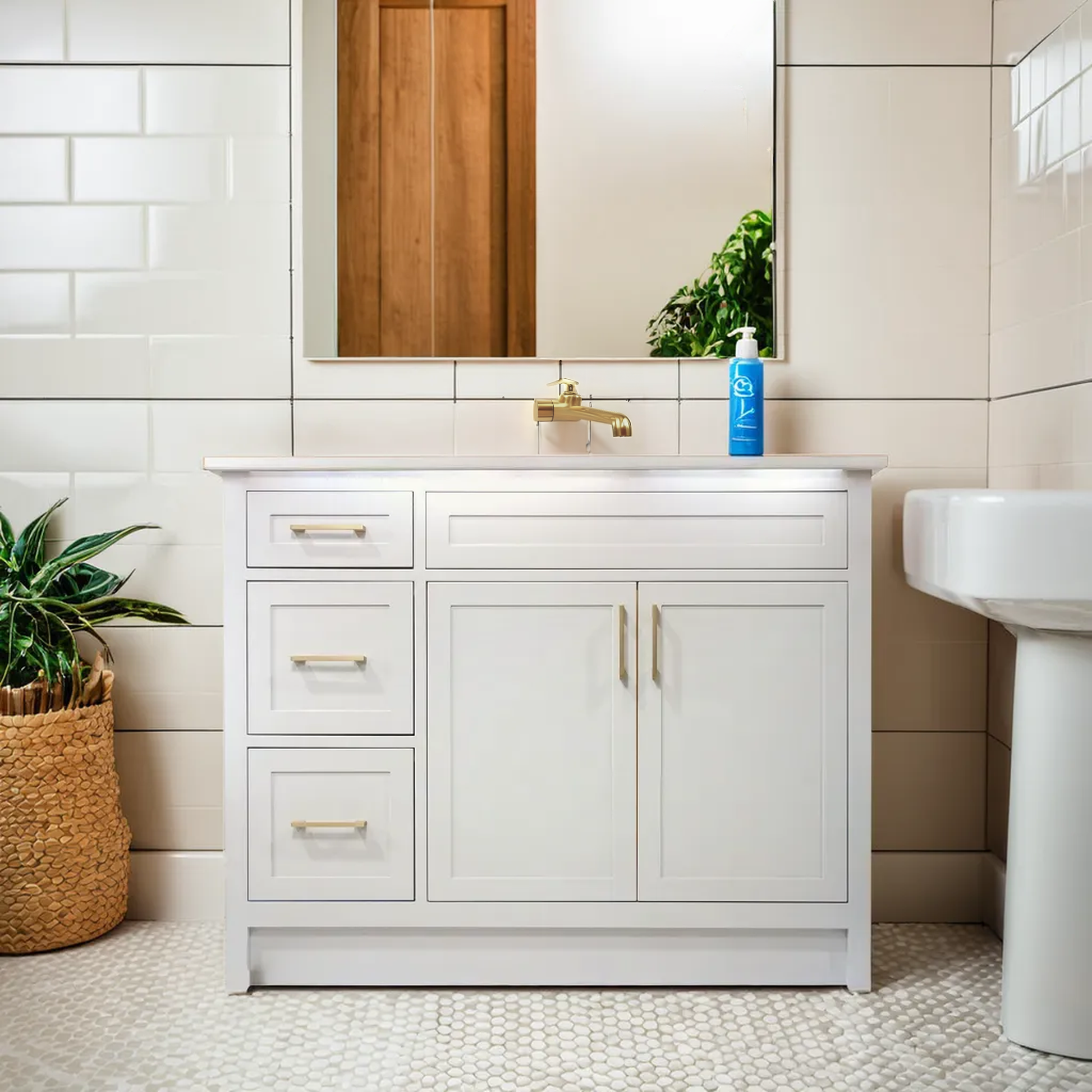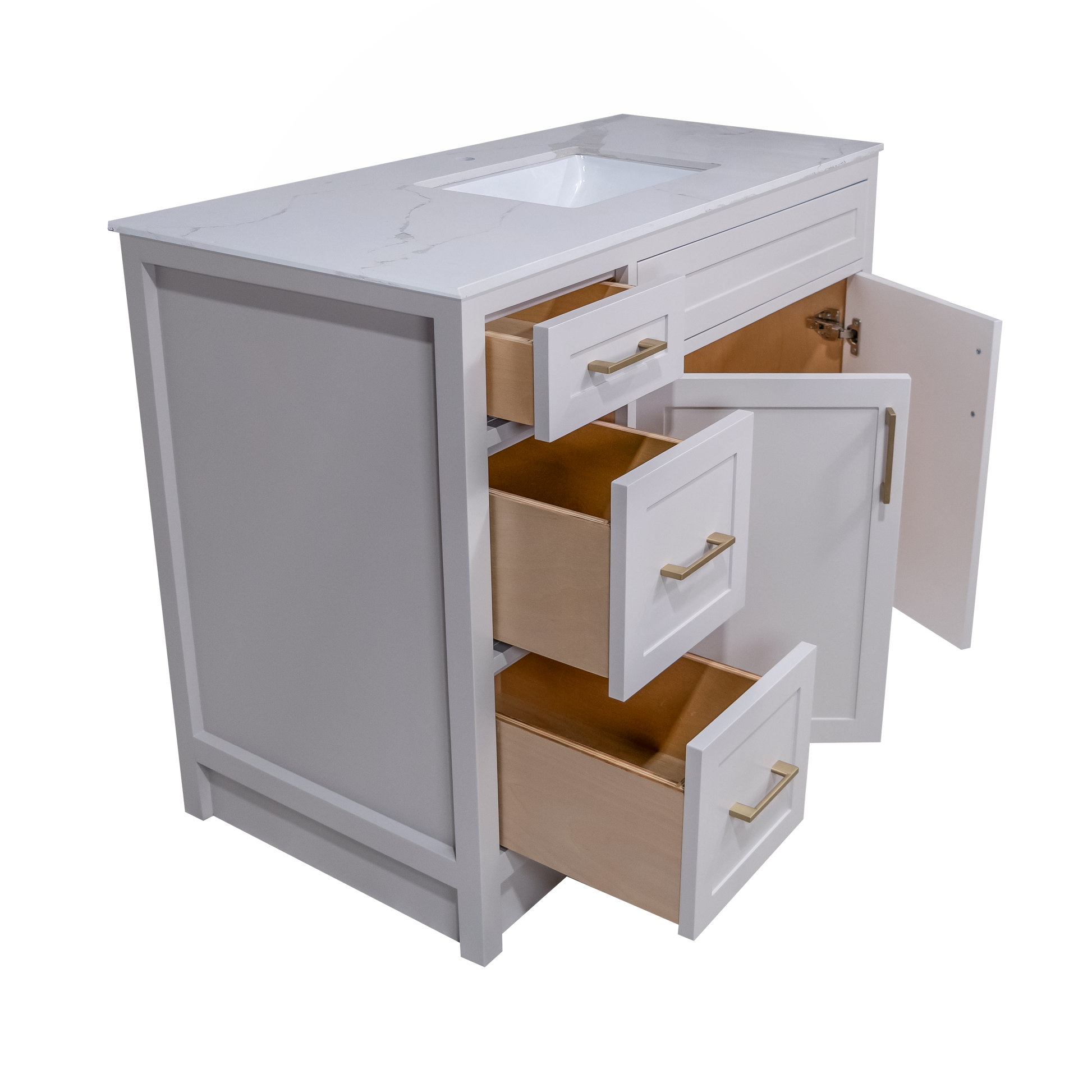 42" Cement Grey Wood Vanity With Quartz Top Canada Made