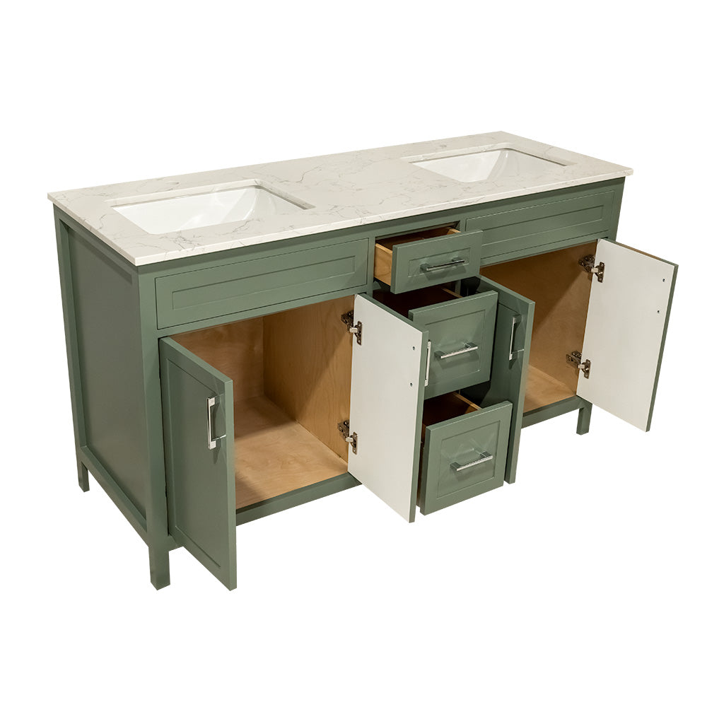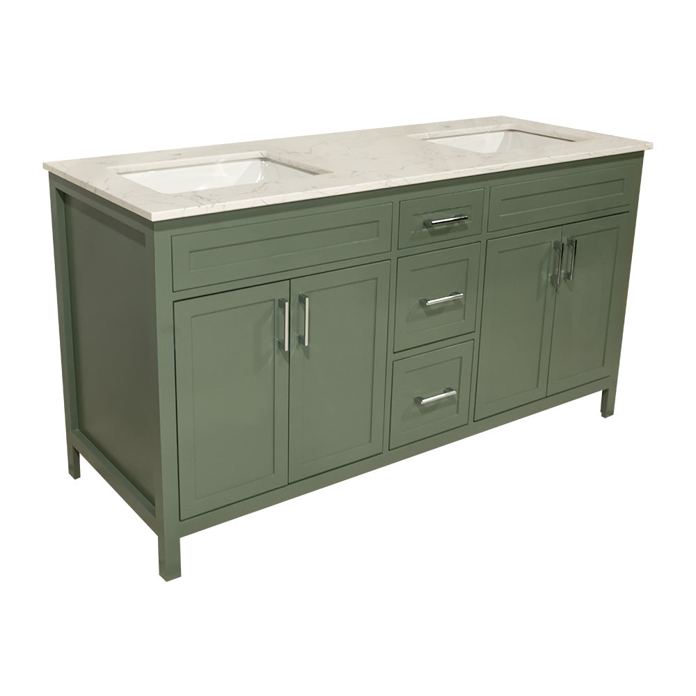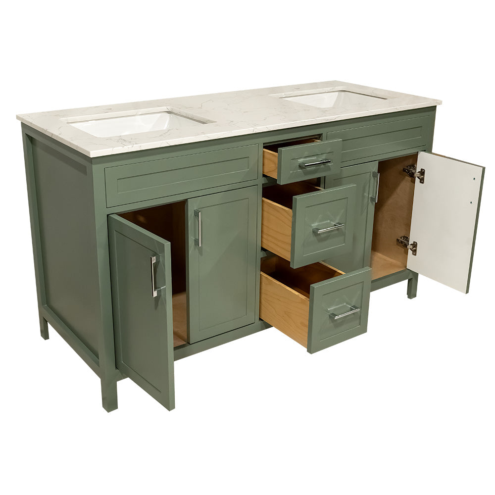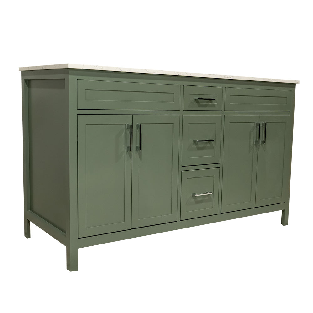 60" wooden vanity double sink with quartz top made in Canada