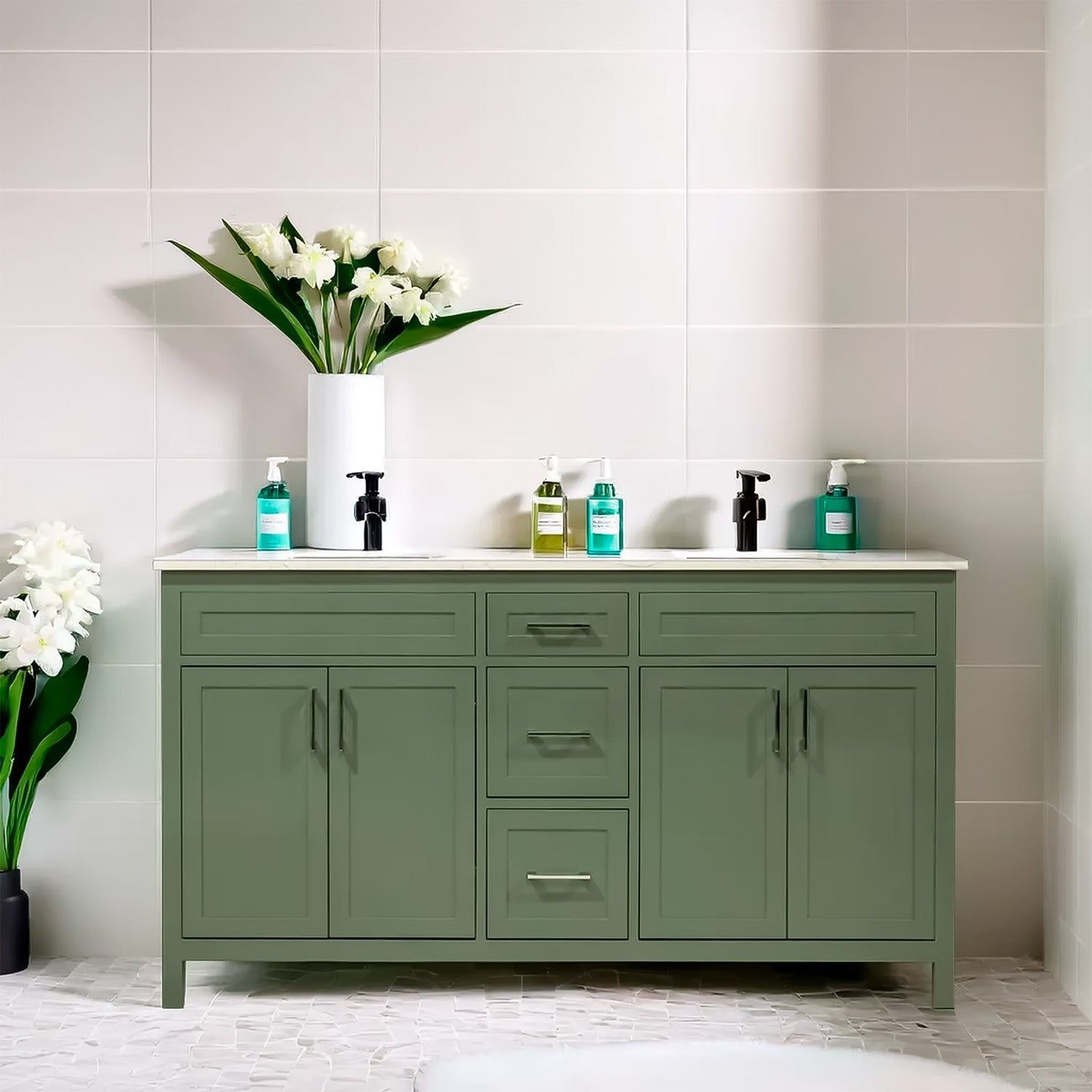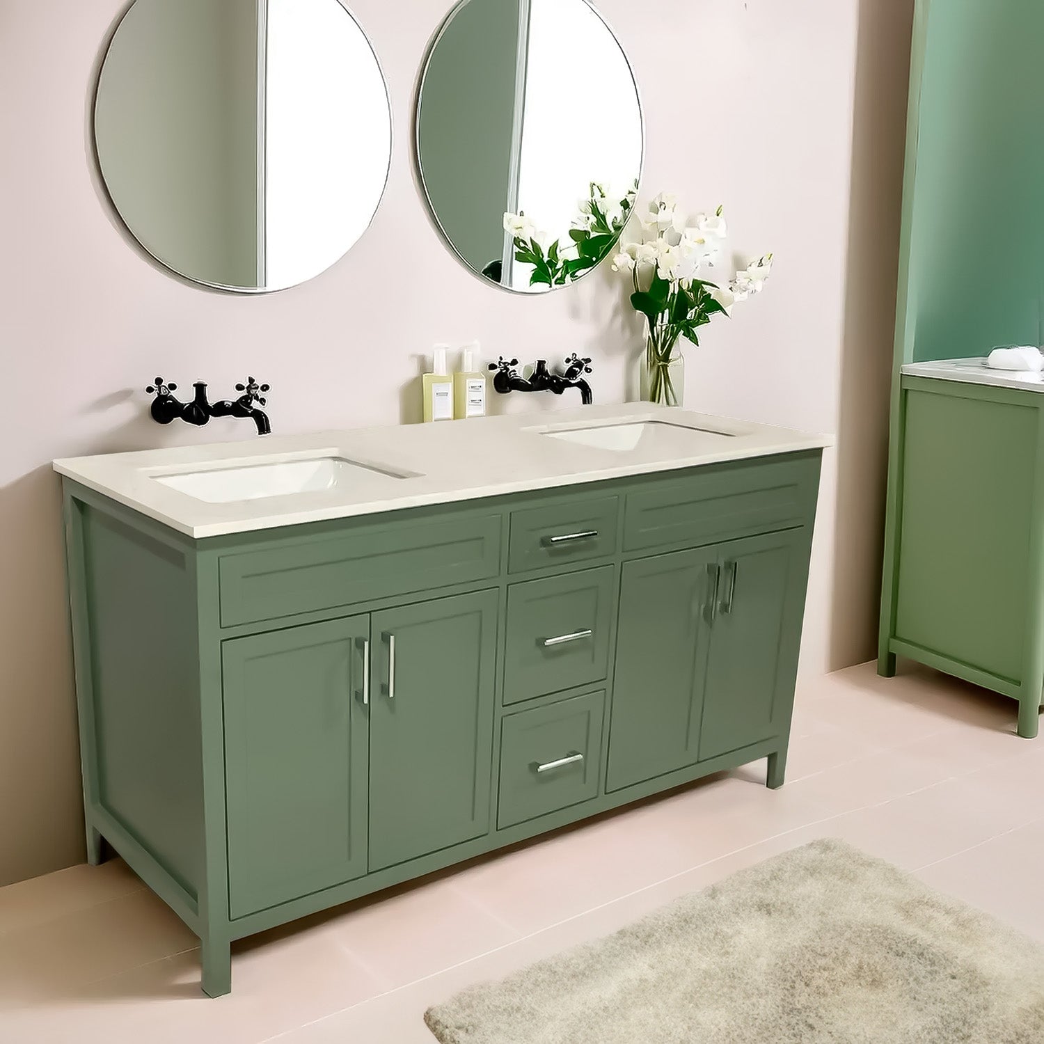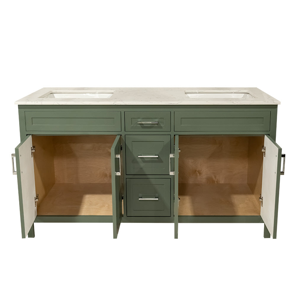 60" wooden vanity double sink with quartz top made in Canada
